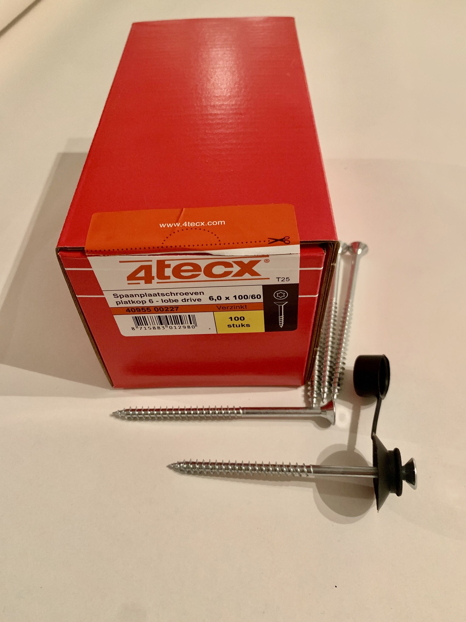 Montage schroeven platkop verzinkt 6,0 x 100/60 mm doos 100st TX25. Te gebruiken om polycarbonaat golfplaten te bevestigen in combinatie met afdichting rubber met dop